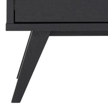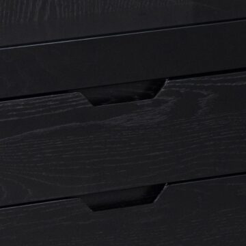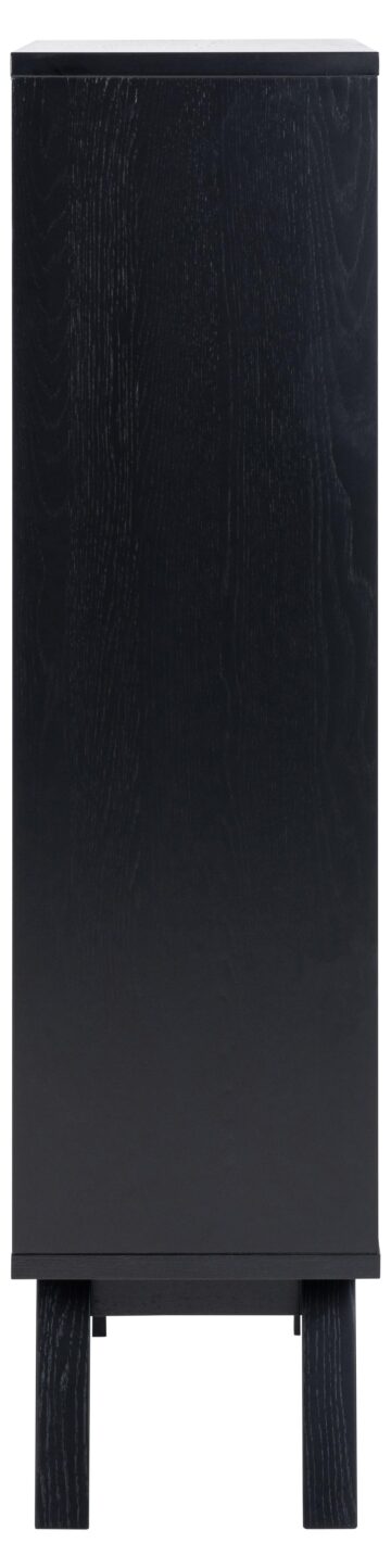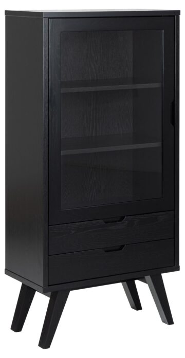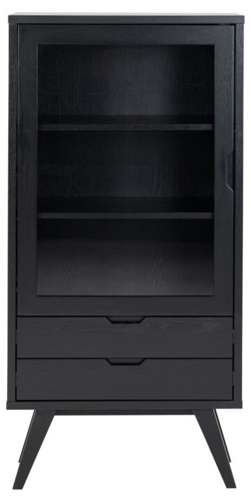 Vitrina A-Line združuje velikodušen prostor za shranjevanje s preprosto, a prefinjeno estetiko skandinavskega dizajna. Izdelana iz hrastovega furnirja z mat črnim lakiranim premazom, vitrina prinaša naraven občutek v vsak prostor, medtem ko njena debela okvirna konstrukcija in noge ustvarjajo robusten in stabilen videz. Dve polici za steklenimi vrati iz kaljenega stekla in dva predala z gladko drsnimi kovinskimi vodili ponujata dovolj prostora za shranjevanje in razstavljanje.