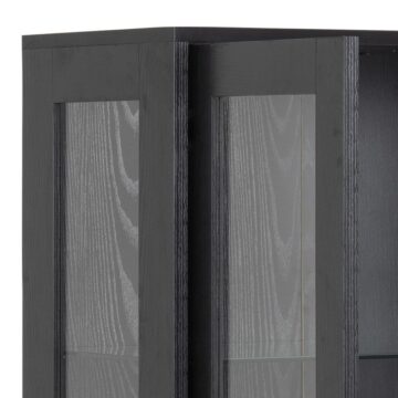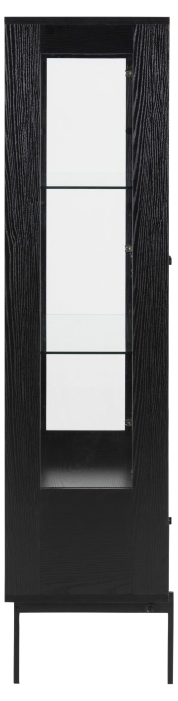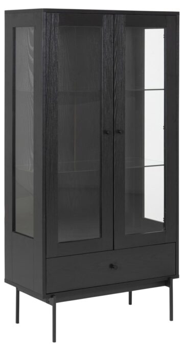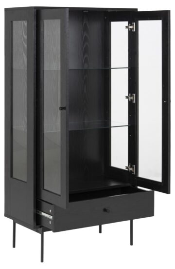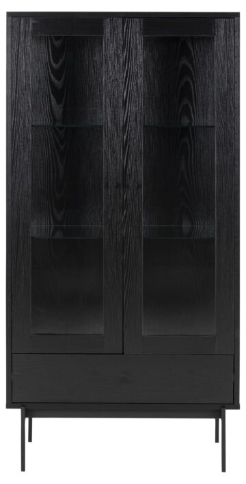 Vitrina Angus je popoln kos pohištva za vse, ki cenijo sodoben dizajn in funkcionalnost. Z vrhnjo ploščo in predalom v videzu črnega pepela ter steklenimi vrati in policami iz kaljenega stekla ta vitrina ponuja prostor za razstavljanje vaših najljubših predmetov, hkrati pa omogoča dodatno shranjevanje. Čiste linije in lahka konstrukcija dodajo prostoru prefinjen videz, medtem ko nastavljive kovinske noge zagotavljajo stabilnost.