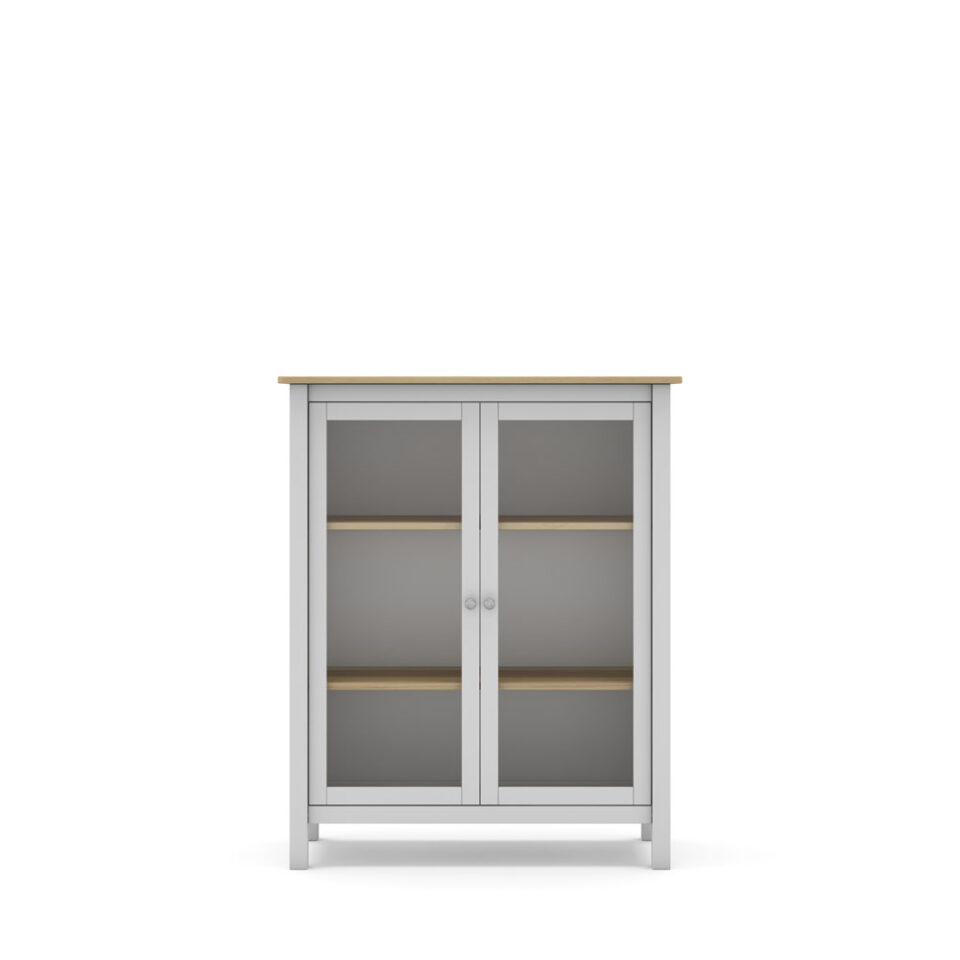 Ta vitrina se ponaša s prefinjenim dizajnom, ki združuje eleganco in funkcionalnost. Izdelana je iz visokokakovostnih materialov, ki zagotavljajo dolgo življenjsko dobo in odpornost na obrabo. Vitrina Misti ima steklena vrata, ki omogočajo eleganten pogled na vaše najljubše predmete, kot so knjige, dekorativni kosi ali spominki.