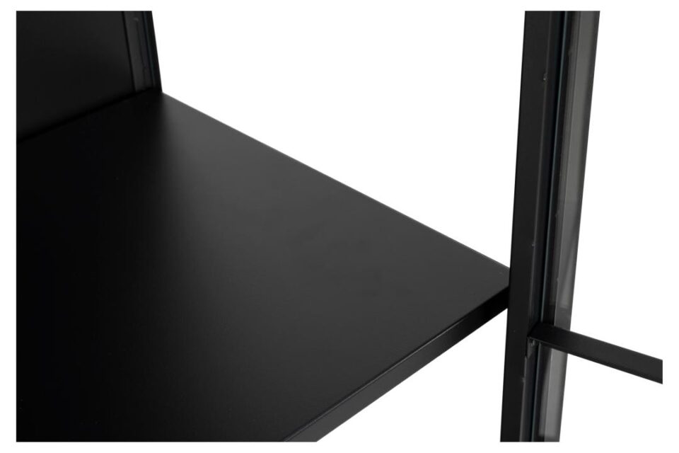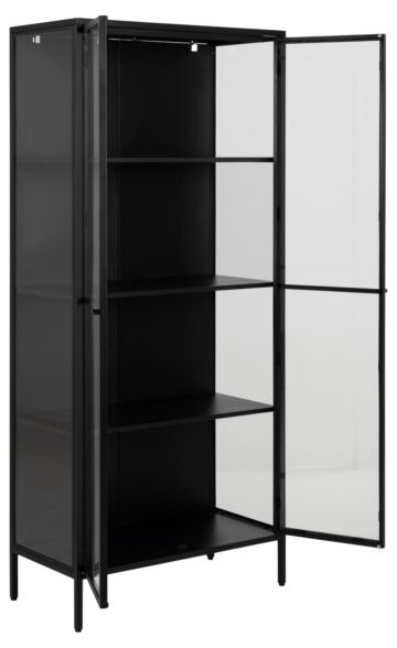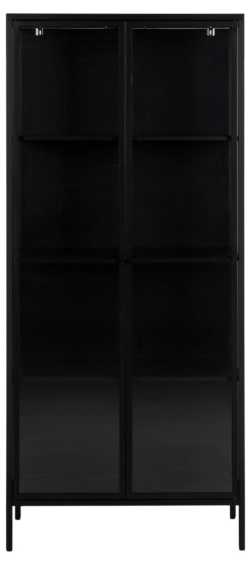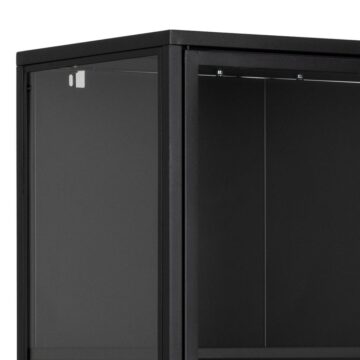 Vitrina Newcastle je idealen kos pohištva za tiste, ki želijo v svoj dom vnesti močan industrijski pridih z modernimi elementi. Narejena iz mat črno prašno lakiranega jekla in s kaljenimi steklenimi vrati, ta vitrina ponuja veliko prostora za shranjevanje in razstavljanje vaših najljubših predmetov. Čiste linije, kombinacija stekla in kovine ter robustna zasnova ustvarjajo privlačen industrijski videz, ki se prilega različnim notranjim slogom.