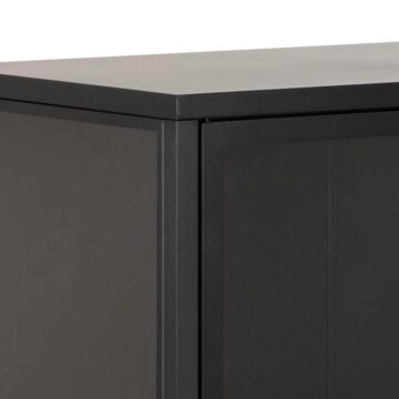 Vitrina Newcastle združuje industrijsko estetiko in sodobno funkcionalnost, s čimer bo vašemu prostoru dodala prefinjen pridih. Izdelana iz mat črno prašno lakiranega jekla in kaljenega stekla, ta vitrina omogoča razstavljanje vaših najljubših predmetov na eleganten način. Steklena vrata v kombinaciji s kovinskim okvirjem ustvarjajo čist in sodoben videz, ki se prilega različnim notranjim stilom.