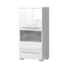 Vitrina Radda PIANO je UV lakirana na visoki sijaj v bež ali beli barvi. Vsebuje ena vrata ter en predal. Spodnja in zgornja plošča sta 25mm in s tem še močnejši oz. z večjo nosilnostjo. Ročaji in noge so kromirani. Vse fronte se tiho zapirajo. Omarica je iz zelo obsežnega sestavljivega programa, ki ima na razpolago ogromno elementov.
