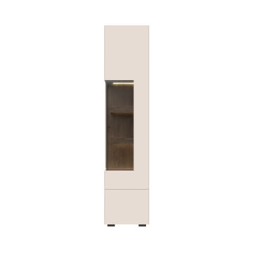 Vključuje masivne notranje police, ki zagotavljajo trpežno shranjevanje. Vgrajena skrita LED osvetlitev poudarja razstavljene predmete ter prispeva k sodobni estetiki.