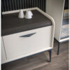 - Kovinski elementi: Osnova iz kovinskega okvirja v antracit dekorju, noge in ročaji prav tako v antracitni barvi, kar poudarja sodoben industrijski videz.