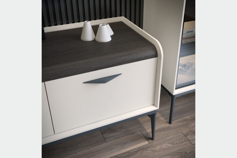 Vitrina Soffy iz kolekcije za dnevne sobe je vrhunski kos pohištva, ki združuje sodobno estetiko, visoko kakovost materialov in praktičnost.