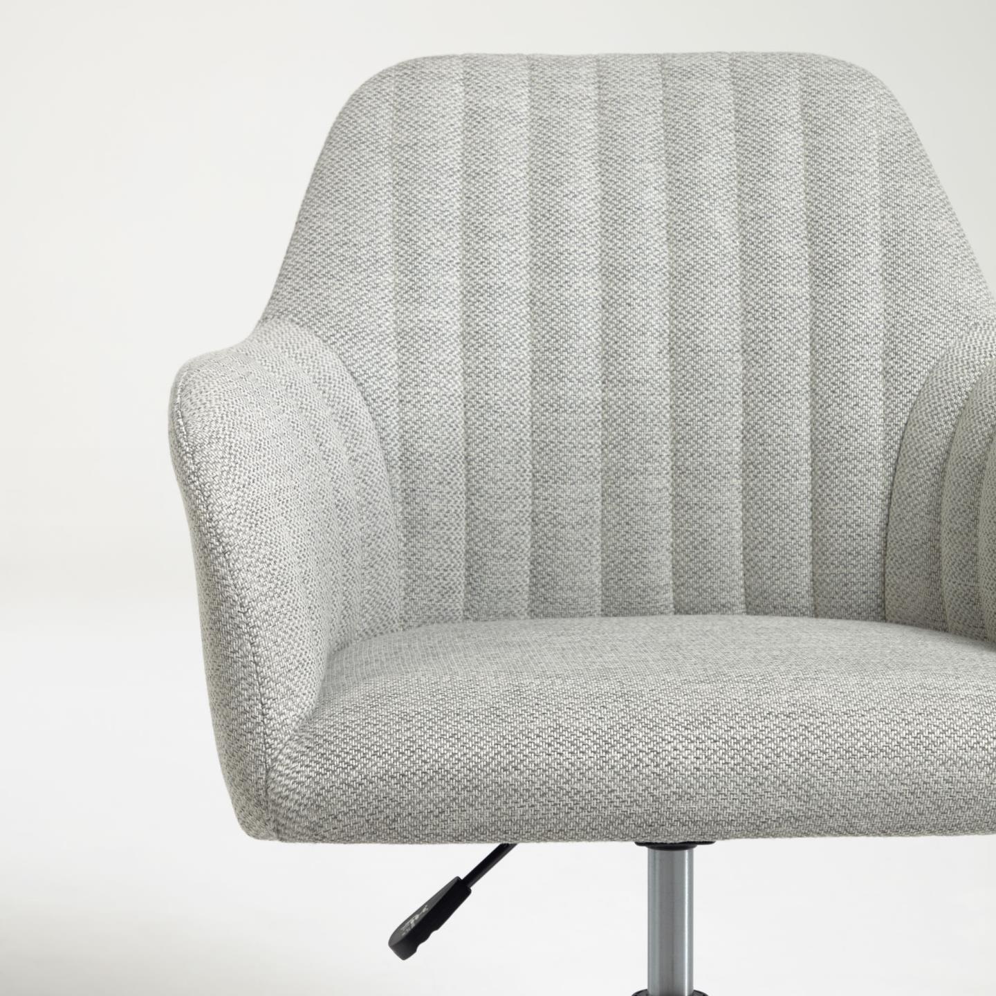 Pisarniški stol Madina združuje sodoben dizajn in funkcionalnost za udobno delo. Vrtljiv sedež, nastavljiva višina in kolesa omogočajo popolno prilagodljivost, medtem ko elegantna svetlo siva barva dodaja pridih modernosti vašemu delovnemu prostoru.