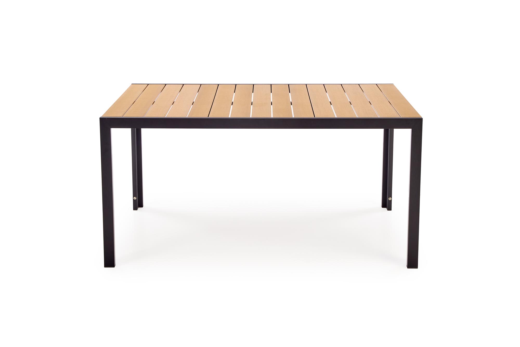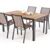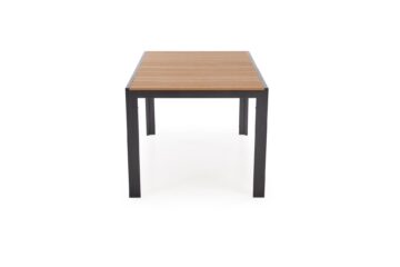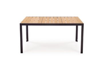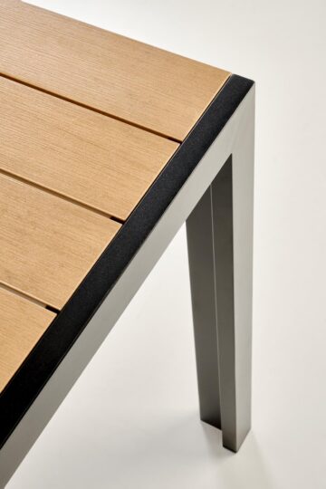 Kombinacija črnega okvirja in rjave površine mize deluje nevtralno in se lepo poda k različnim zunanjim ambientom – od modernih teras do klasičnih vrtnih jedilnic.