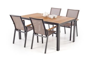 Komplet Fierro je dobra izbira za zunanje jedilne prostore, kjer želite stabilno mizo, enostavno vzdrževanje in sodoben videz za družinska kosila ali večerna druženja na prostem.