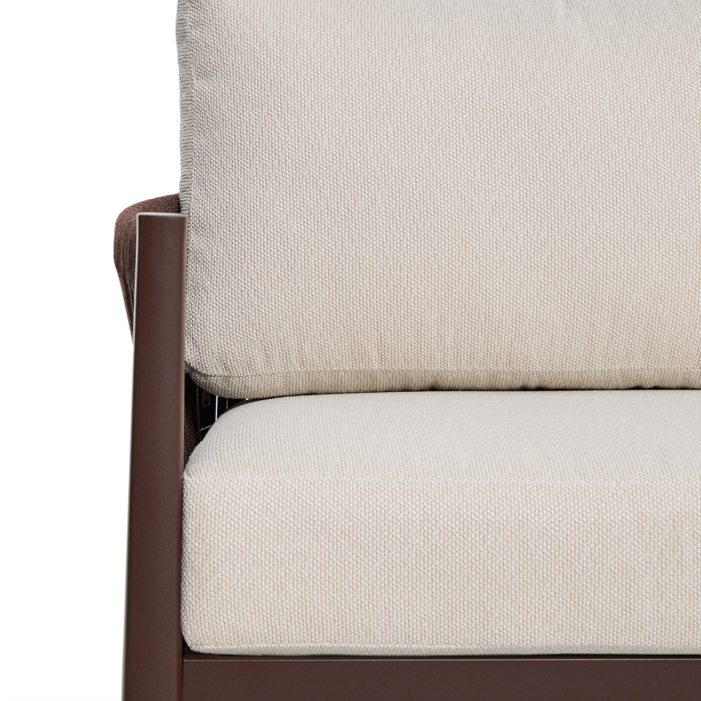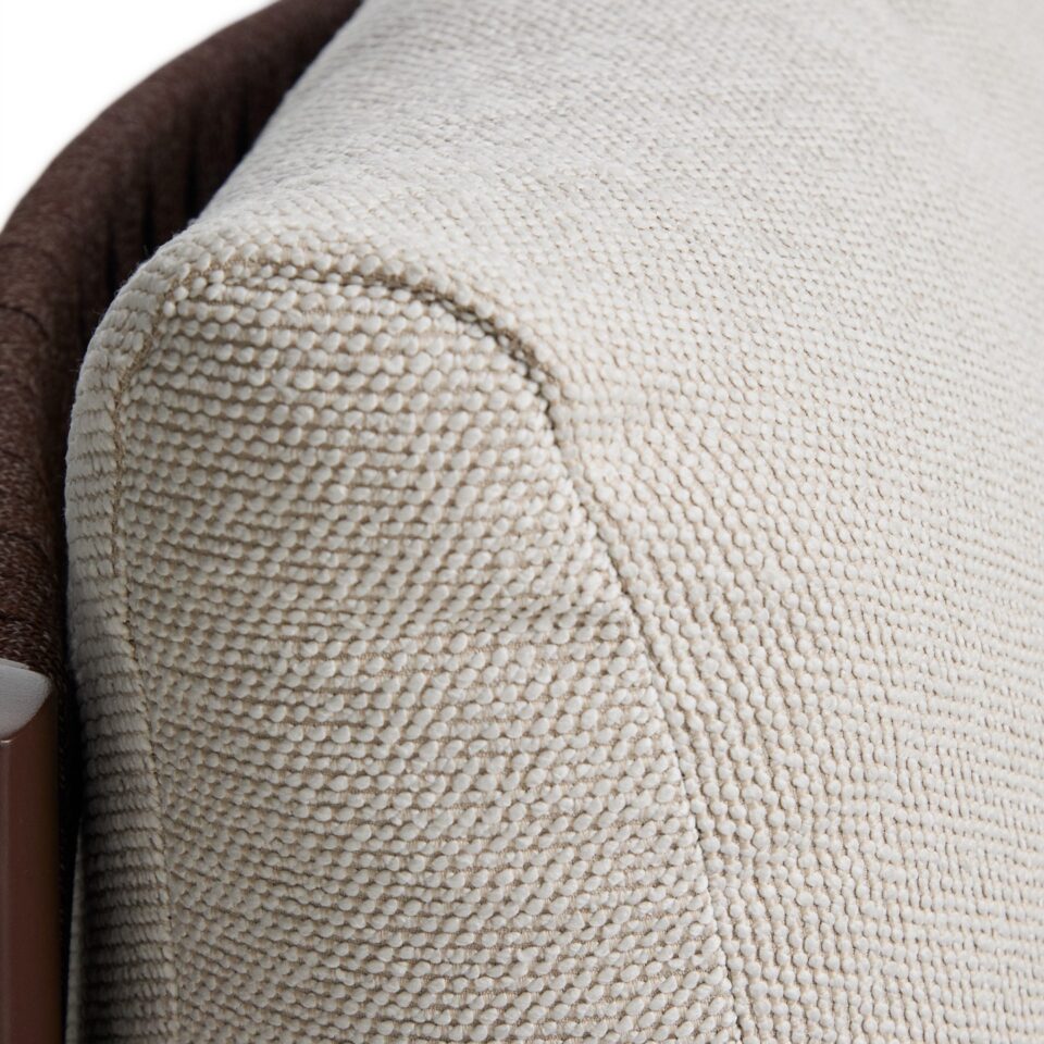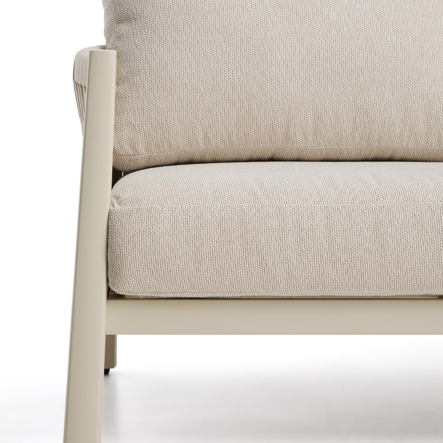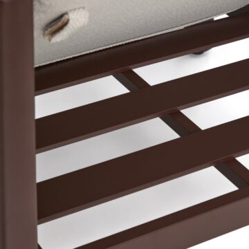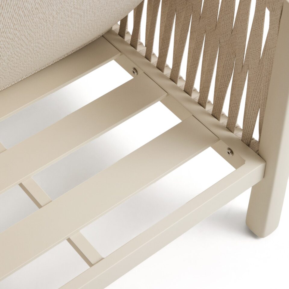 - Udobje in estetika: Ročno prepleteno naslonjalo iz sintetične vrvi dodaja udobno, objemajočo teksturo in harmoničen videz.