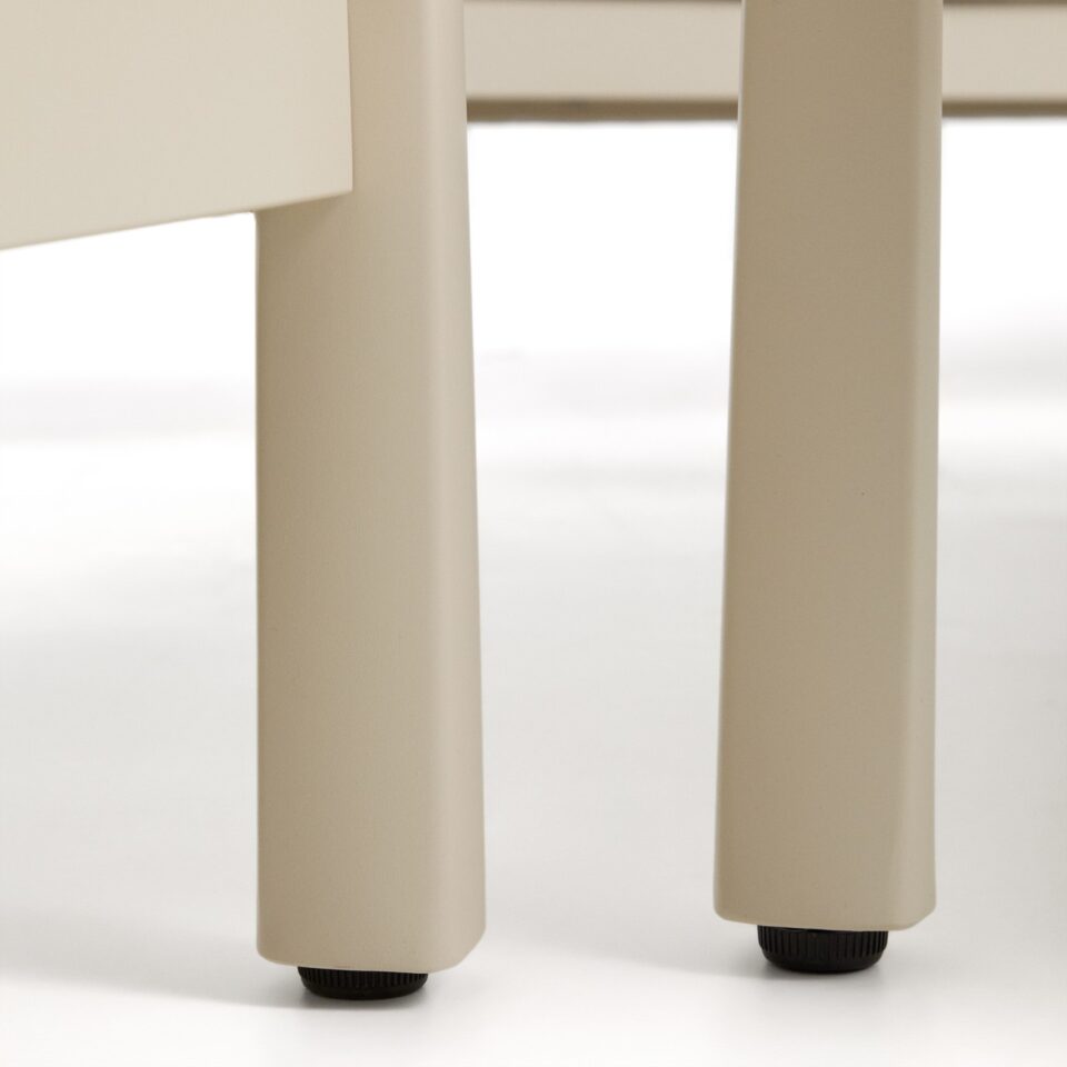 - Zaščita tal: Noge so opremljene s plastičnimi ščitniki, ki preprečujejo poškodbe in praske na vaši terasi ali drugih površinah.