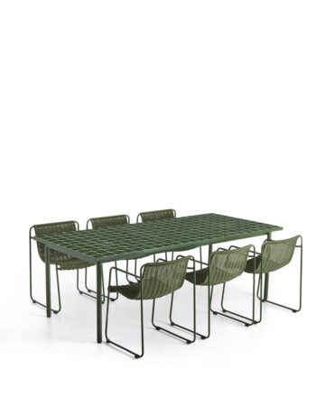 Preobrazite svoj zunanji prostor v oazo udobja in stila z vrtno jedilno garnituro Maurina. Ta čudovita zelena garnitura, zasnovana za druženje na prostem, združuje sodoben dizajn, izjemno trpežnost in prefinjeno eleganco. Uživajte v nepozabnih obrokih in sproščenih trenutkih z družino in prijatelji v objemu narave.