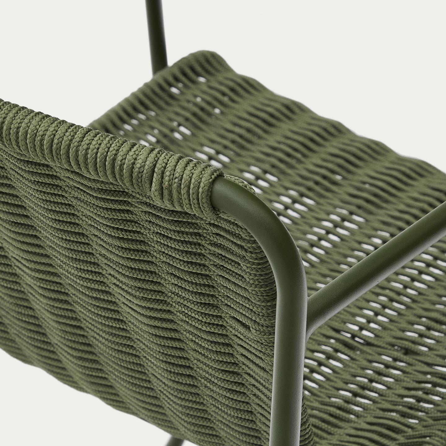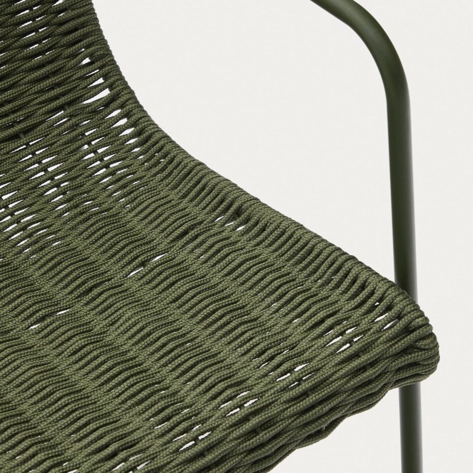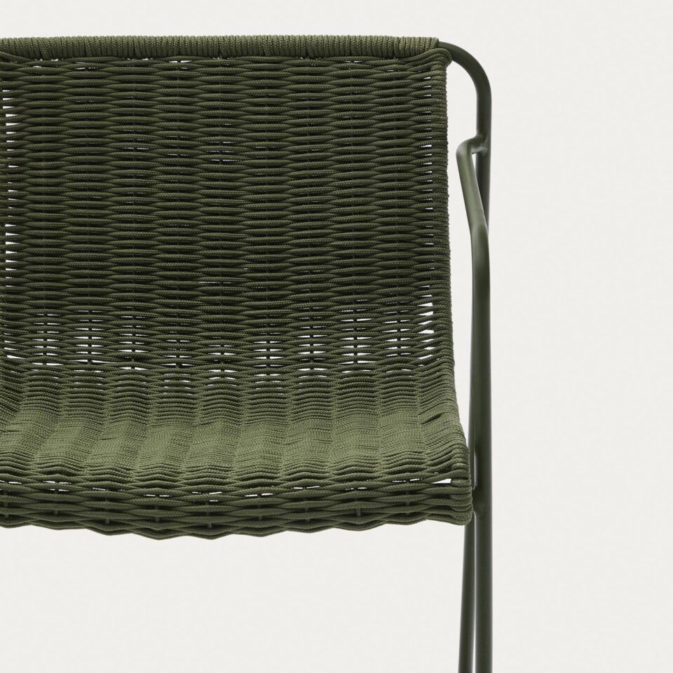 - Ročno tkana vrv: Sedeži in naslonjala stolov so ročno tkani iz vrvi, odporne na UV-žarke, kar zagotavlja udobje in dolgo življenjsko dobo.