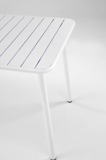 Vrtna miza Bosco je kompaktna sodobna miza, primerna za balkon, teraso ali vrtni kotiček. Zaradi kvadratne oblike in nevtralne bele barve se lepo poda v različne zunanje ambiente ter omogoča udobno uporabo za do šest oseb.