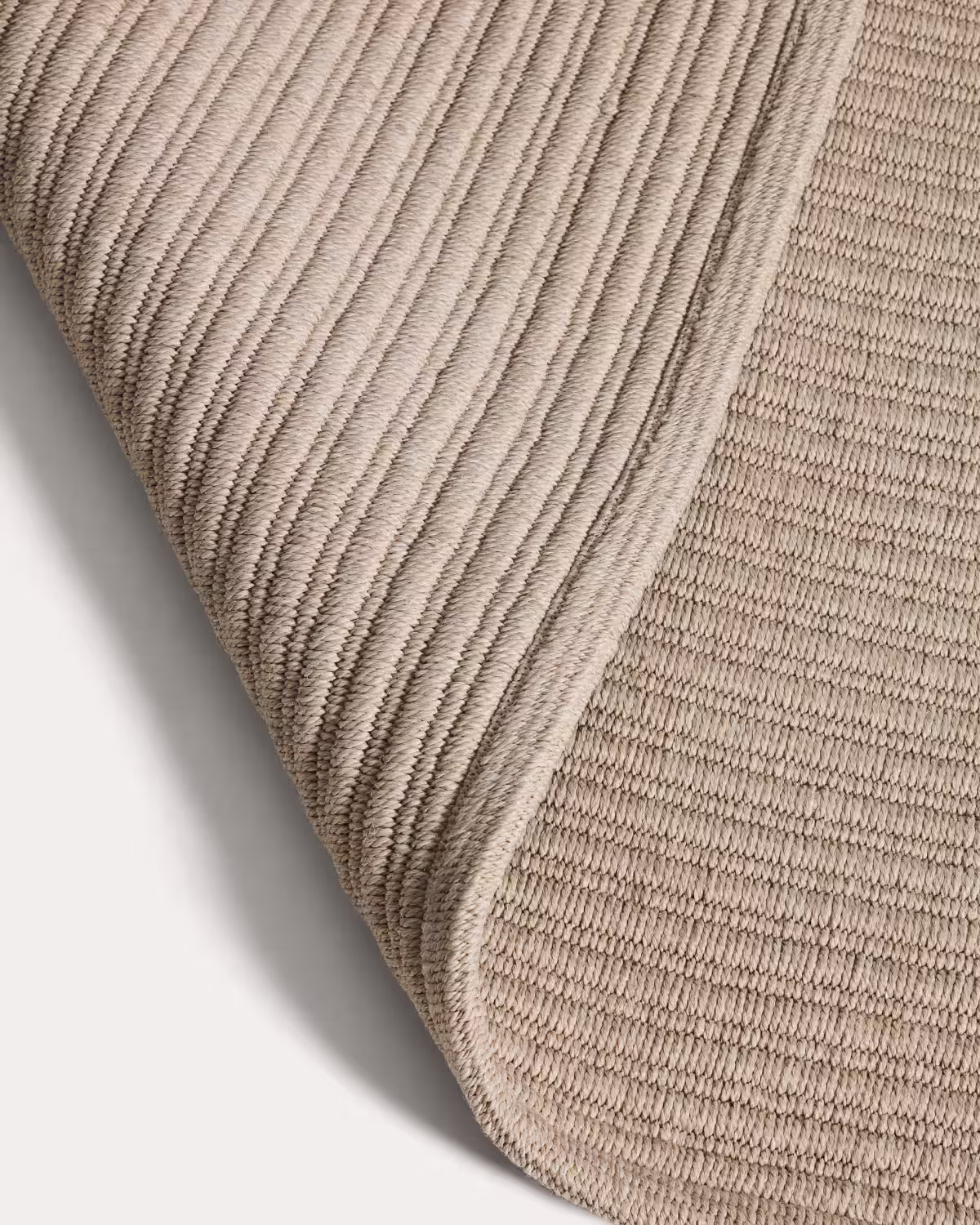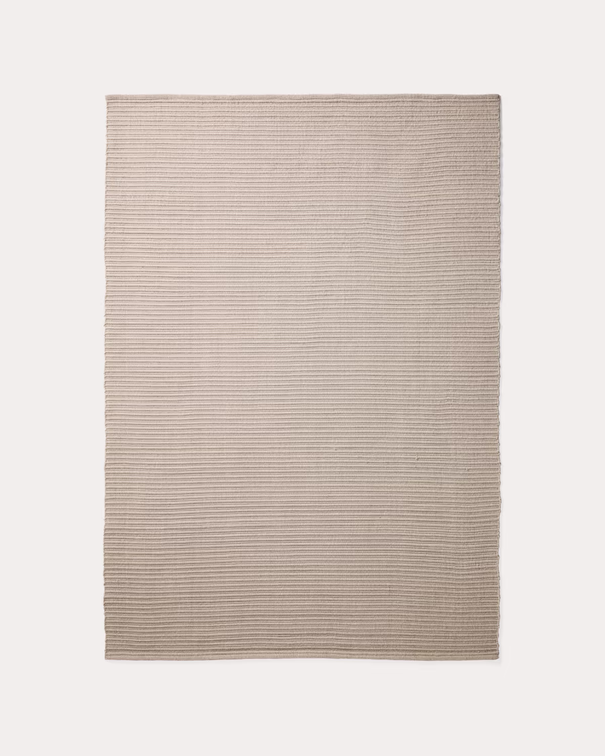 Preproga Ardelia v ecru barvi iz sintetičnih vlaken v večjem formatu 200 x 300 cm prinaša preprostost, teksturo in funkcionalnost v večje notranje ali zunanje prostore. Nežen črtast vzorec ustvari subtilen vizualni poudarek, ki se lepo vključi v različne stile opreme.