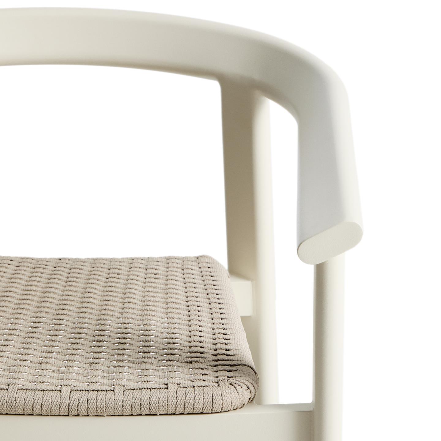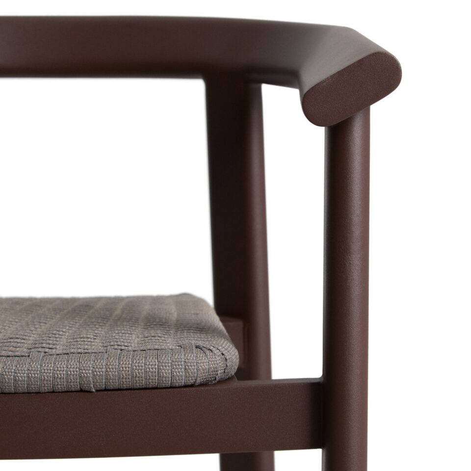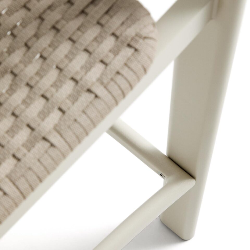 - Ročno tkan sedež: Sedež je ročno tkan iz kakovostne vrvi, ki doda prijetno teksturo in je obdelana za odpornost proti UV-žarkom, ohranjajoč svojo lepoto skozi čas.