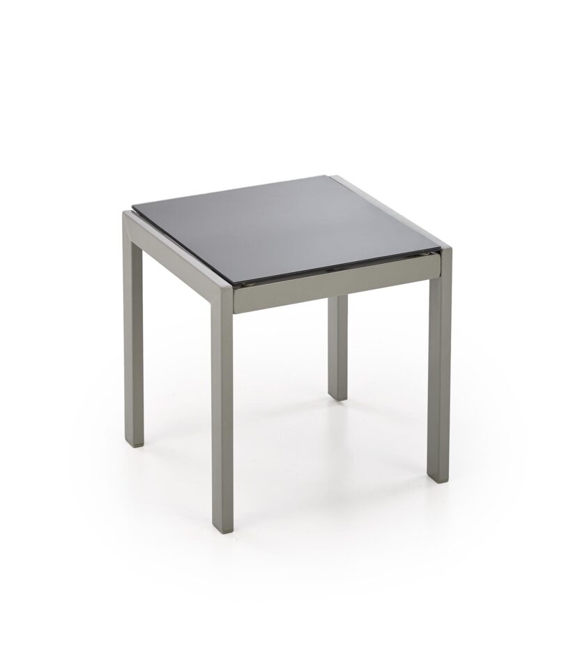 Kombinacija črne kovinske konstrukcije in svetlo sive tkanine deluje sodobno in nevtralno, zato se komplet lepo poda v različne zunanje ambiente.
