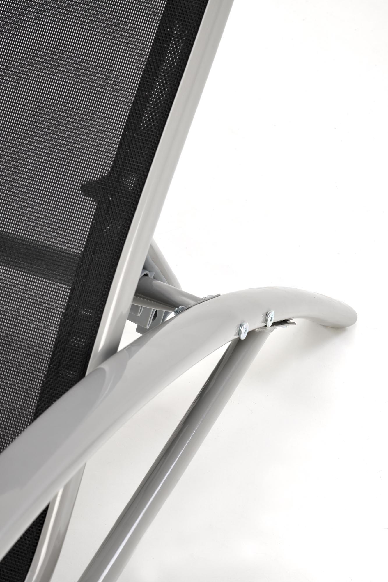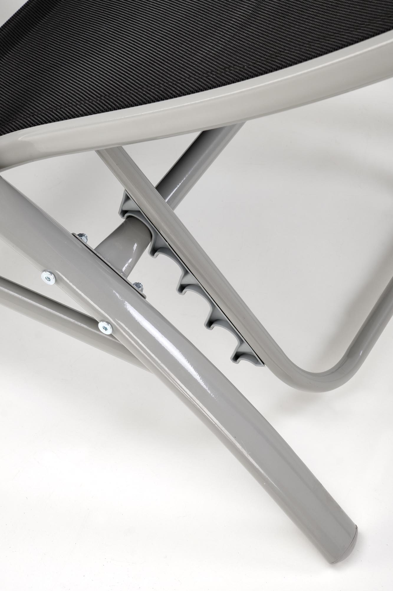 Kombinacija črne kovinske konstrukcije in svetlo sive tkanine deluje sodobno in nevtralno, zato se komplet lepo poda v različne zunanje ambiente.
