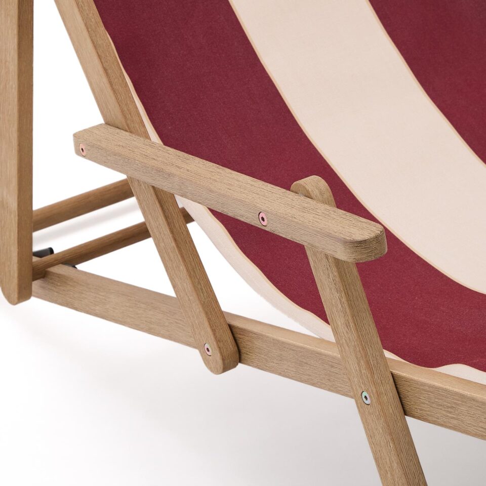 Uživajte v sončnih dneh in popolni sprostitvi z vrtnim ležalnikom Vilara. Ta klasičen in udoben ležalnik je idealen dodatek za vaš vrt, teraso, bazen ali celo plažo, saj združuje brezčasen dizajn z vrhunsko funkcionalnostjo. Na voljo je v elegantnih barvnih kombinacijah: rdeče-bež (v izboru kot ‘rjava’), osvežilna zeleno-bež in sofisticirana mornarsko modra z nežnimi svetlimi črtami.