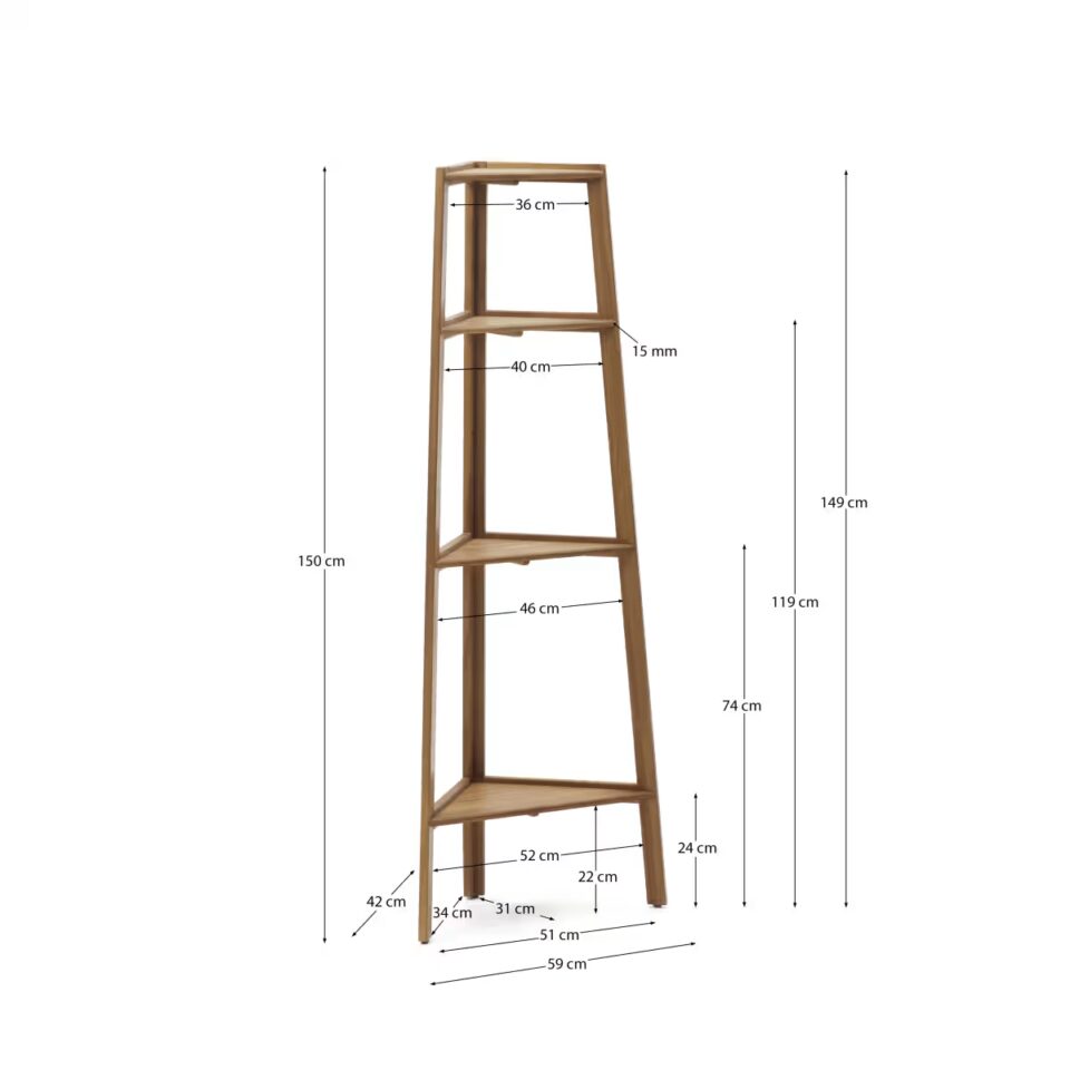 Poličnik Victora iz masivnega akacijevega lesa v naravni barvi prinaša toplino in funkcionalnost v zunanje ali notranje prostore. S svojo ozko in visoko zasnovo je idealen za manjše prostore, kjer želite izkoristiti višino.