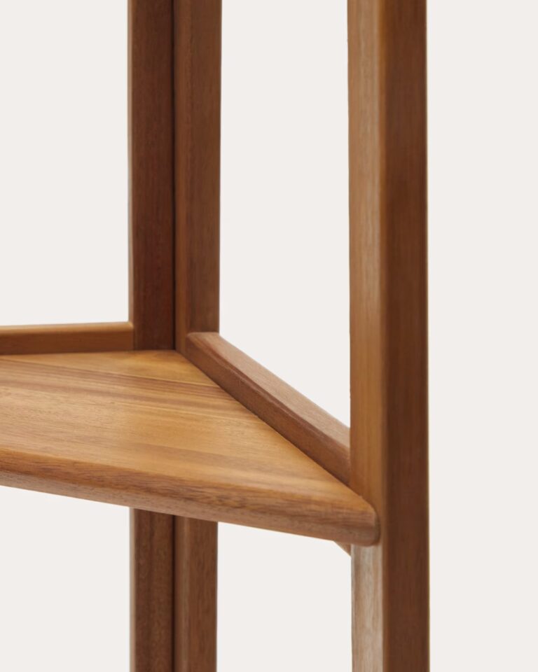 Izdelan iz trajnostnega akacijevega lesa, vsak kos izstopa z unikatnim vzorcem in naravnimi odtenki. Regal omogoča praktično shranjevanje in dekoracijo ter je primeren za uporabo na prostem.