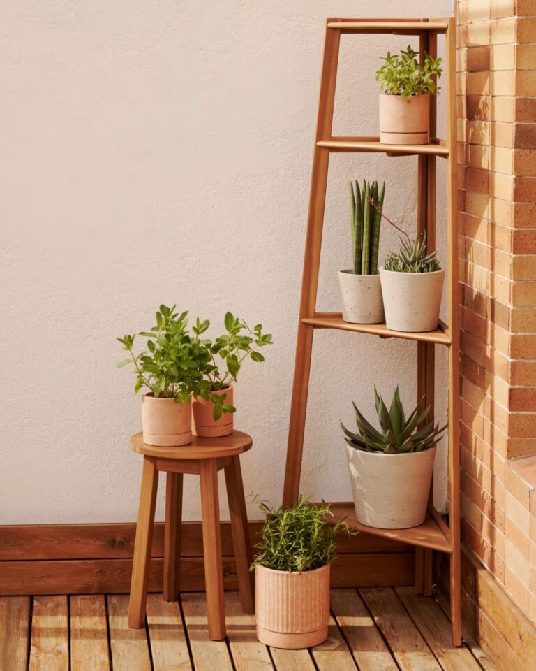 Poličnik Victora je odlična izbira za ozke prostore, balkone ali kotičke, kjer želite ustvariti urejen in naraven ambient.