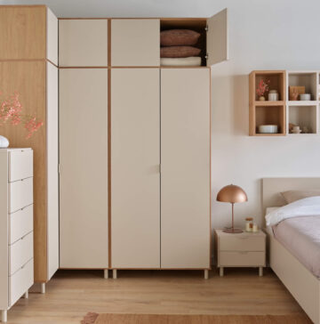 Vrata dvokrilne enote Simple imajo mehanizem za mehko zapiranje, kar je še posebej potrebeno v spalnici.