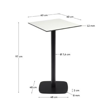Pripravite se na stilsko opremljanje vašega zunanjega prostora z barsko mizo Dina, ki združuje eleganco in funkcionalnost. S svojim čistim, modernim dizajnom in robustno izdelavo je popolna izbira za vaš vrt, teraso, balkon ali celo za notranje prostore. Na voljo je z mizno ploščo v klasični črni ali elegantni beli barvi, da se bo popolnoma prilagodila vašemu stilu.