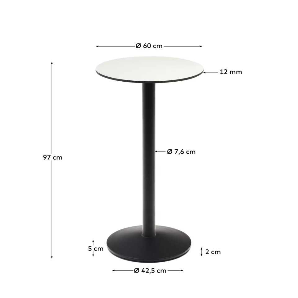 Želite svojemu zunanjemu prostoru dodati pridih elegance in funkcionalnosti? Zunanja barska miza Esilda je popolna izbira za vaš vrt, teraso ali balkon. S sodobnim dizajnom in trpežno konstrukcijo, na voljo v elegantni črni ali svetli beli barvi plošče, bo Esilda postala osrednji element vsakega druženja in ponujala udobno mesto za pijačo ali prigrizke.