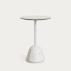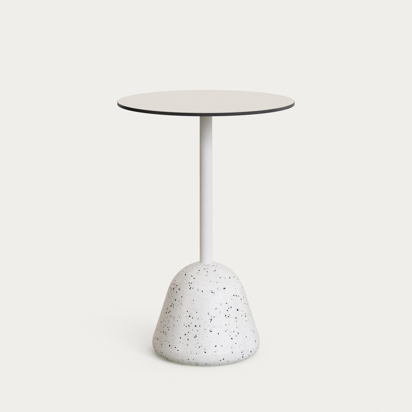Zunanja barska miza Tiaret, premera 68 cm, s svojo elegantno okroglo belo ploščo iz visokotlačnega laminata in unikatnim terrazzo podnožjem, ustvarja popoln ambient za sproščeno druženje na prostem.