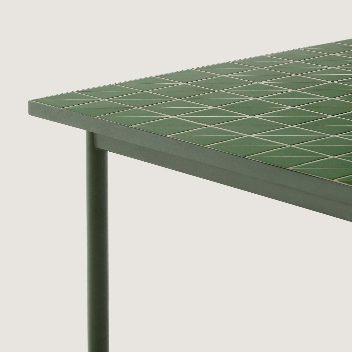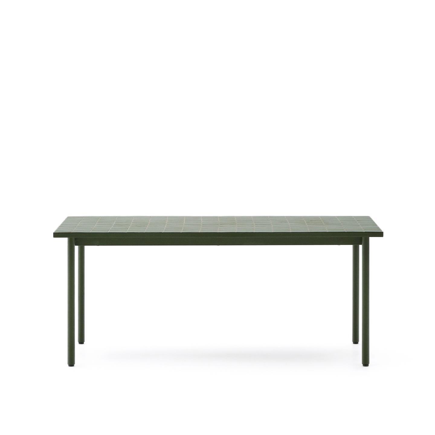 Zunanja miza Maurina iz zelenega pocinkanega jekla z zelenimi ploščicami, dimenzije 223 x 101 cm