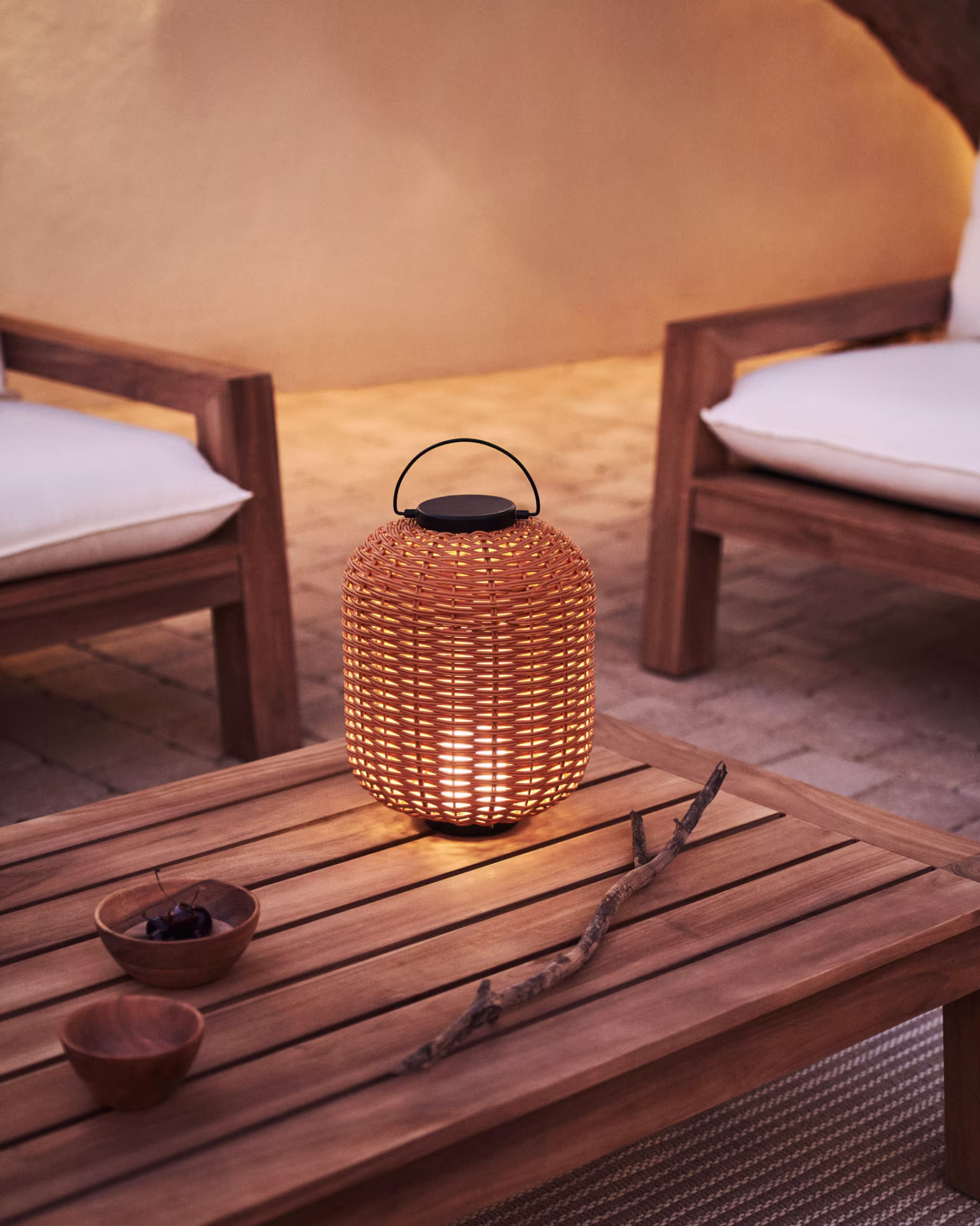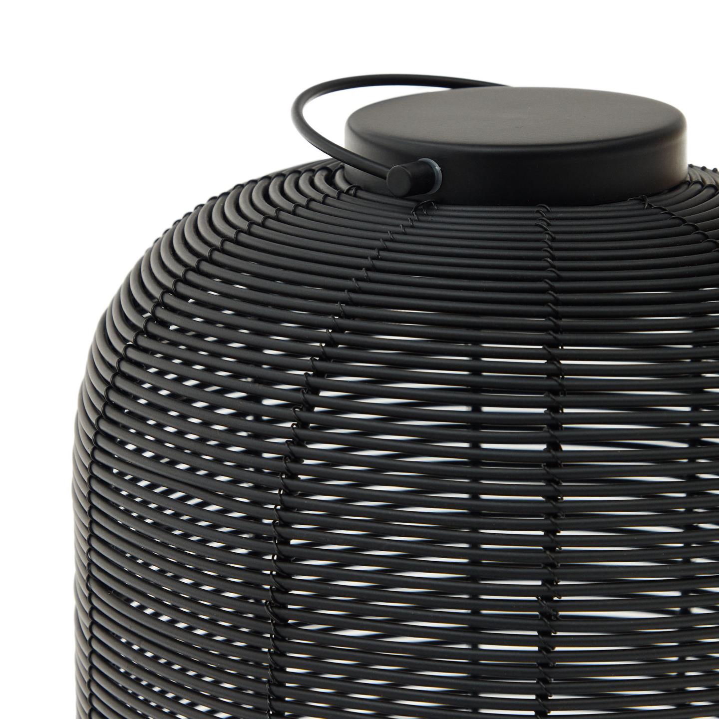 Prepustite se čarobnemu ambientu, ki ga ustvari zunanja namizna svetilka Saranella. Ta elegantna prenosna svetilka, na voljo v trendi rjavi in sofisticirani črni barvi, je popolna za osvetlitev vaših večernih druženj na terasi, balkonu ali v vrtu. S svojim brezčasnim dizajnom iz sintetičnega ratana se bo čudovito podala v vsako zunanje okolje, medtem ko vam vgrajeni ročaj omogoča enostavno prenašanje in obešanje.