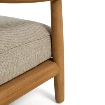 Zunanji fotelj Elunda iz masivnega tikovega lesa prinaša toplino naravnih materialov in udobje v vaš zunanji prostor. Mehke linije konstrukcije, ročno pleten naslon iz UV odporne vrvi ter udobne blazine ustvarjajo prijeten kotiček za sprostitev na terasi ali vrtu.
