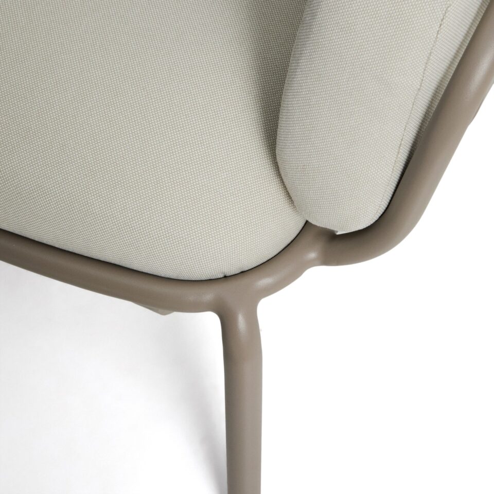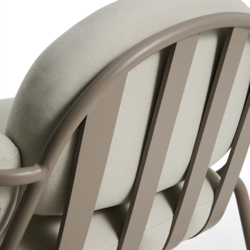 Zunanji naslanjač Joncols v taupe aluminiju združuje organske oblike, udobje in odpornost za uporabo na prostem. Navdihnjen z oblikami rečnih kamnov prinaša mehke linije in sodoben videz, ki se lepo poda na teraso, balkon ali vrt.