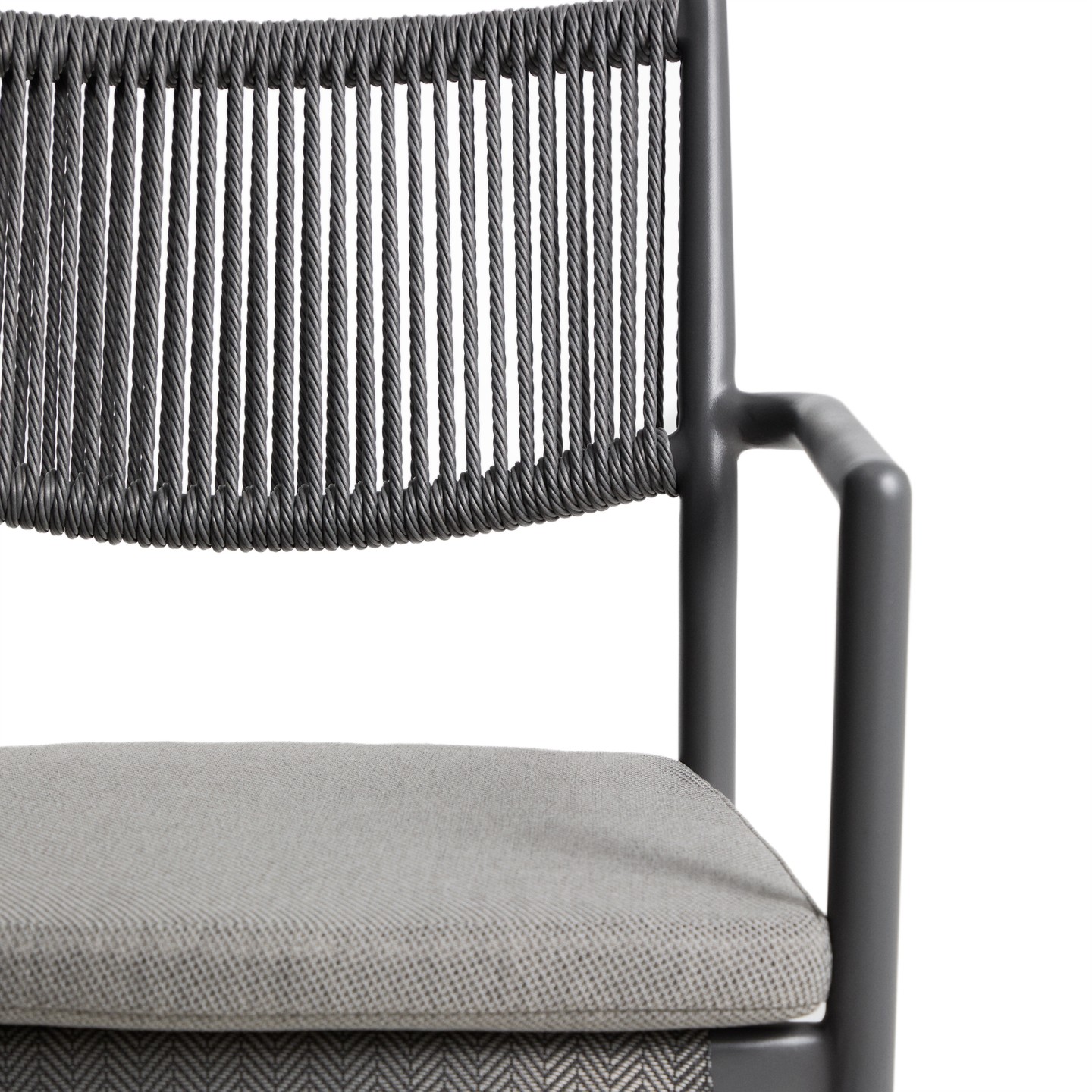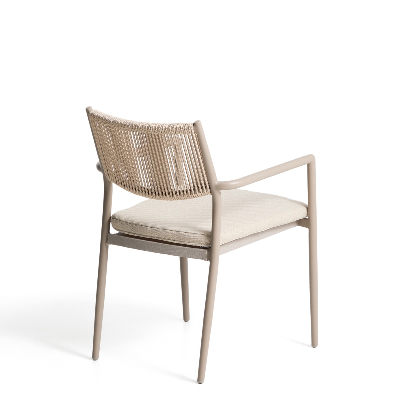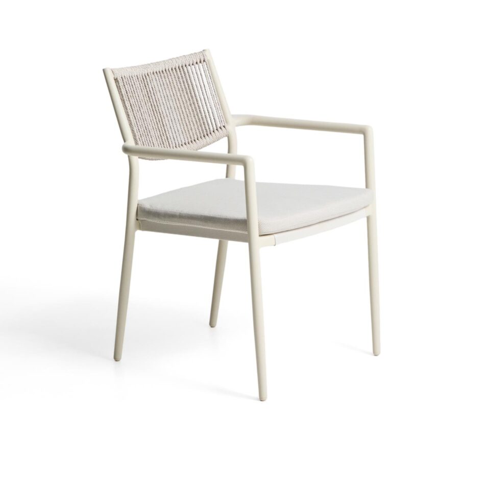 Stol Argasi združuje lahkotno aluminijasto konstrukcijo, trpežne materiale in umirjeno estetiko, ki se poda tako v notranje kot zunanje prostore. Aluminij je odporen proti rji, vlagi in soncu, ročno pleten naslon iz sintetične vrvi pa doda toplino in teksturo. Sedež vključuje odstranljivo blazino za dodatno udobje, stol pa je zložljiv za praktično shranjevanje.