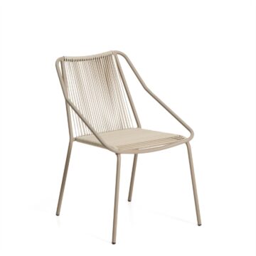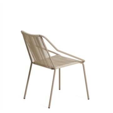 Zunanji stol Zivia z vrvnim sediščem v ecru barvi in jekleno konstrukcijo v taupe odtenku združuje minimalističen dizajn, trpežnost in udobje za uporabo na prostem. Čiste linije, kakovostni materiali in vremenska odpornost omogočajo, da se stol brez težav poda na teraso, balkon ali vrt.