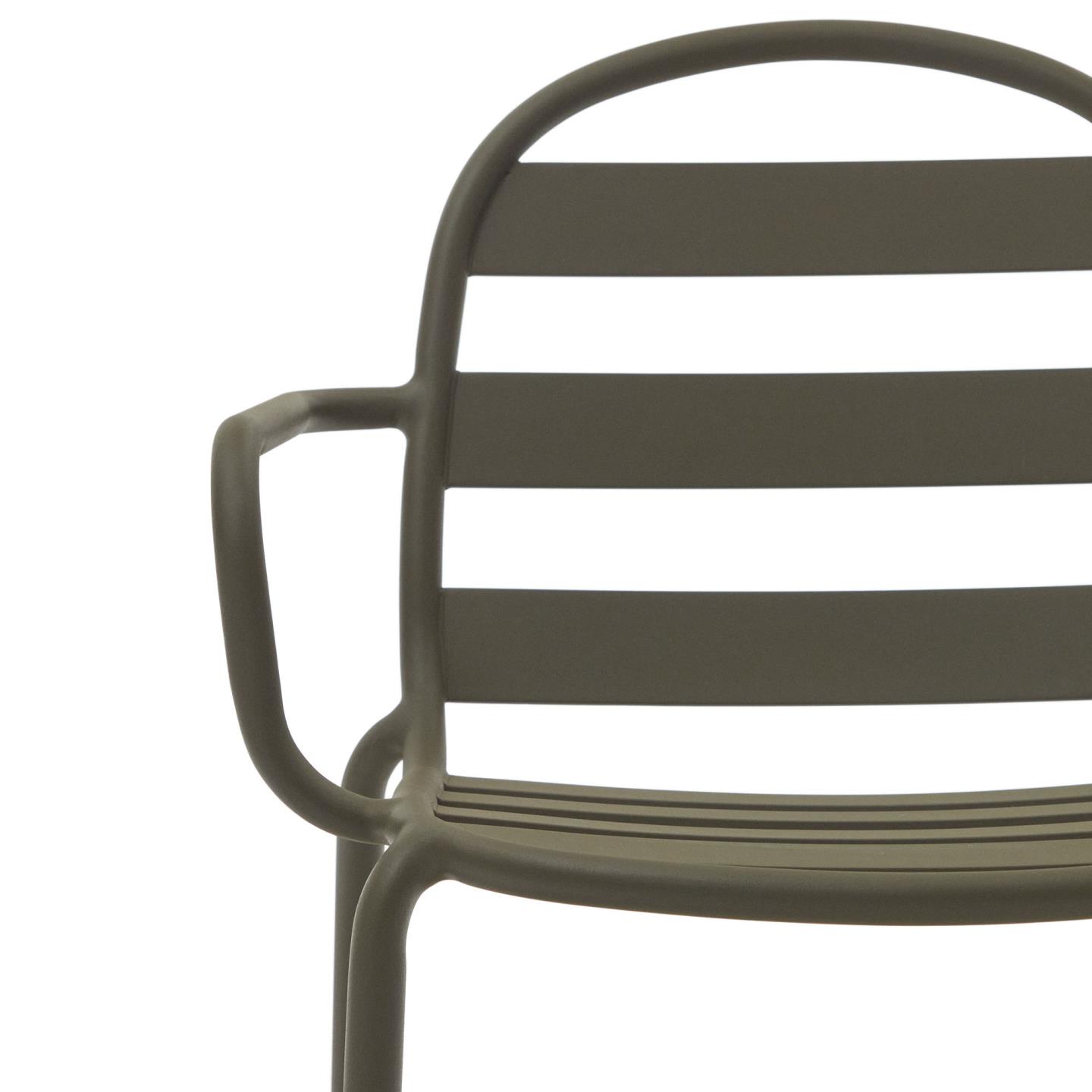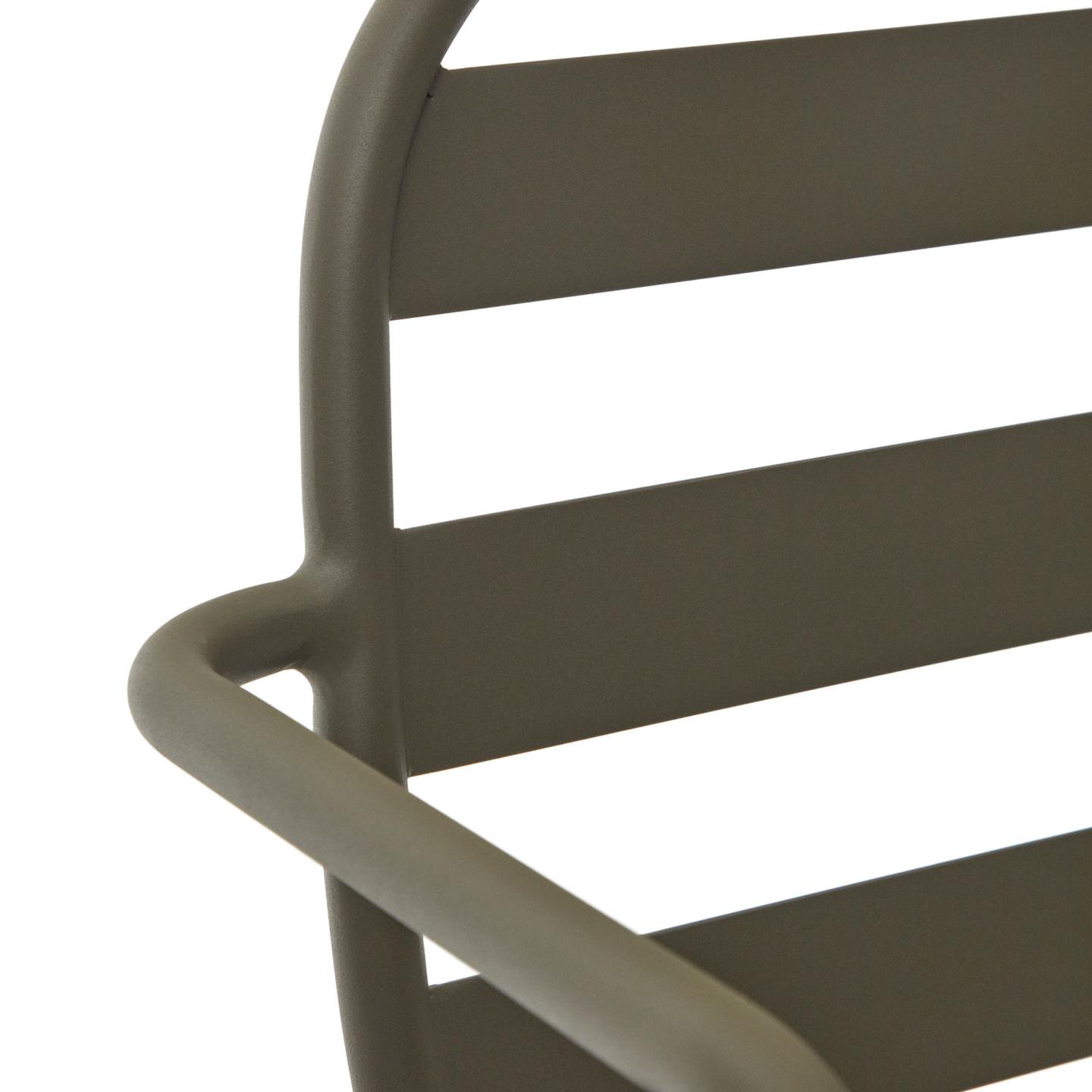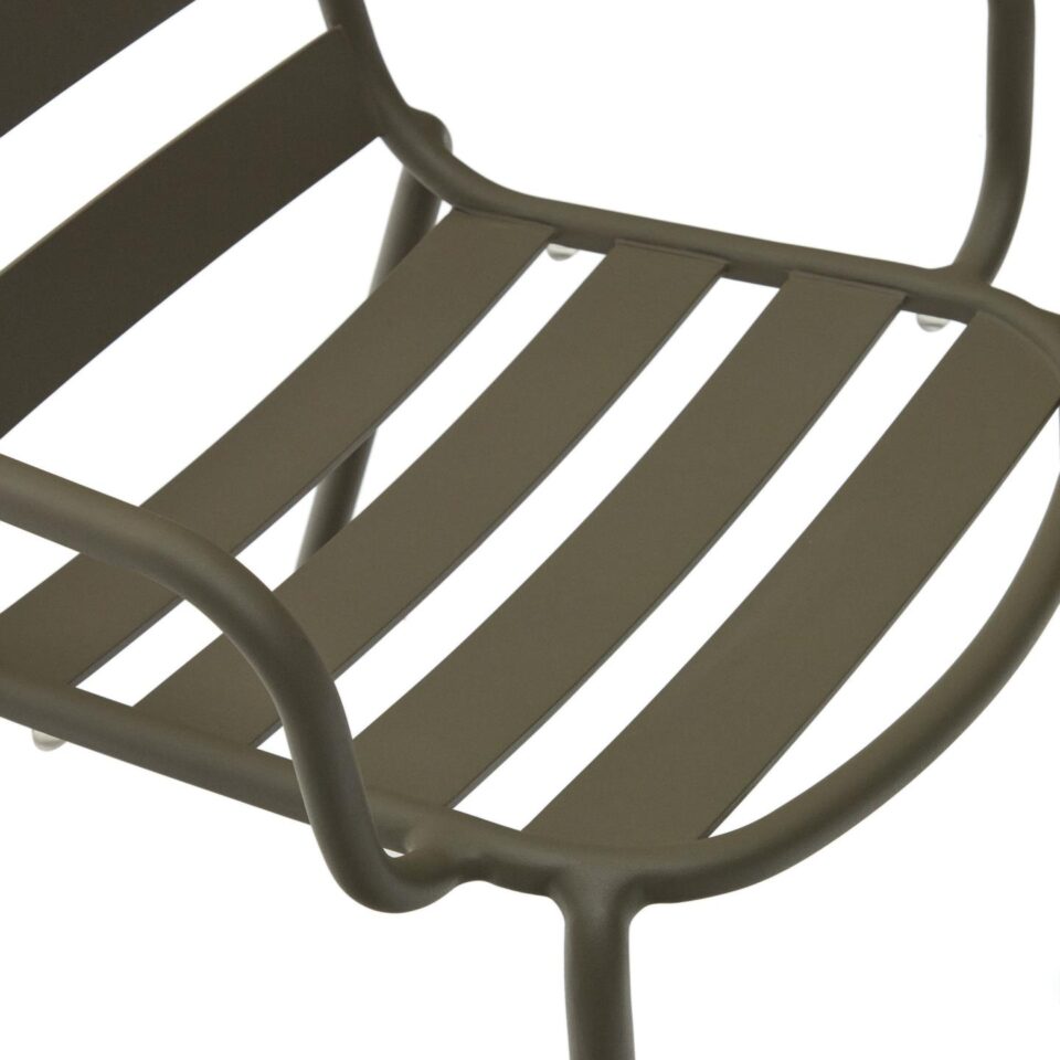 Zložljiv zunanji stol Joncols iz aluminija v zeleni barvi združuje organsko oblikovanje in sodobno funkcionalnost. Navdihnjen z oblikami rečnih kamenčkov se harmonično zlije z zunanjim prostorom ter mu doda eleganten in sproščen značaj.