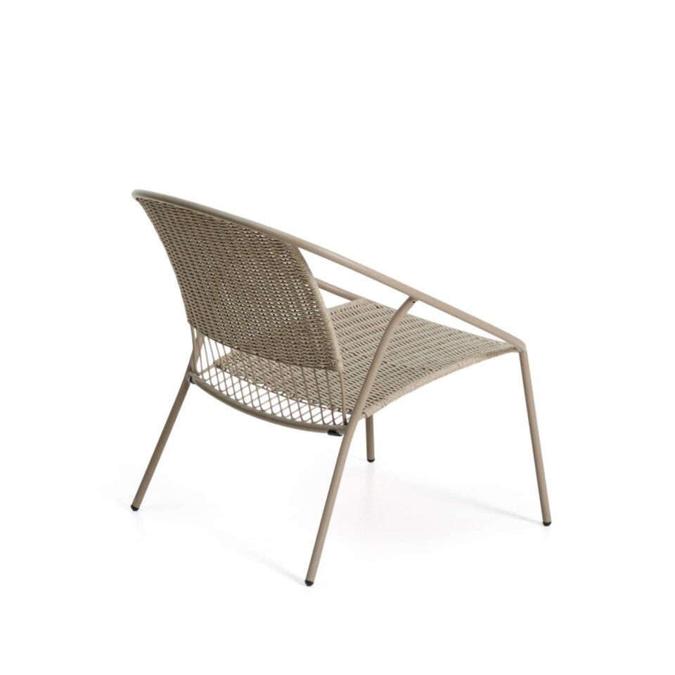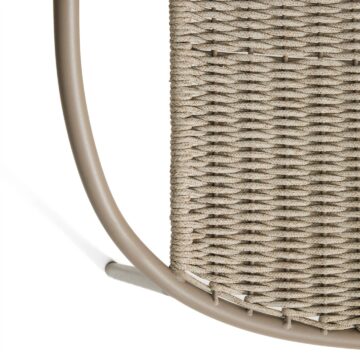 Zunanji fotelj Atrani iz galvaniziranega jekla in bež vrvi združuje lahkotnost, stabilnost in odpornost v sodobni zunanji izvedbi. Zasnovan je za udobno sprostitev na terasi, vrtu ali balkonu, materiali pa zagotavljajo dolgo življenjsko dobo tudi ob stalni izpostavljenosti vremenskim vplivom.