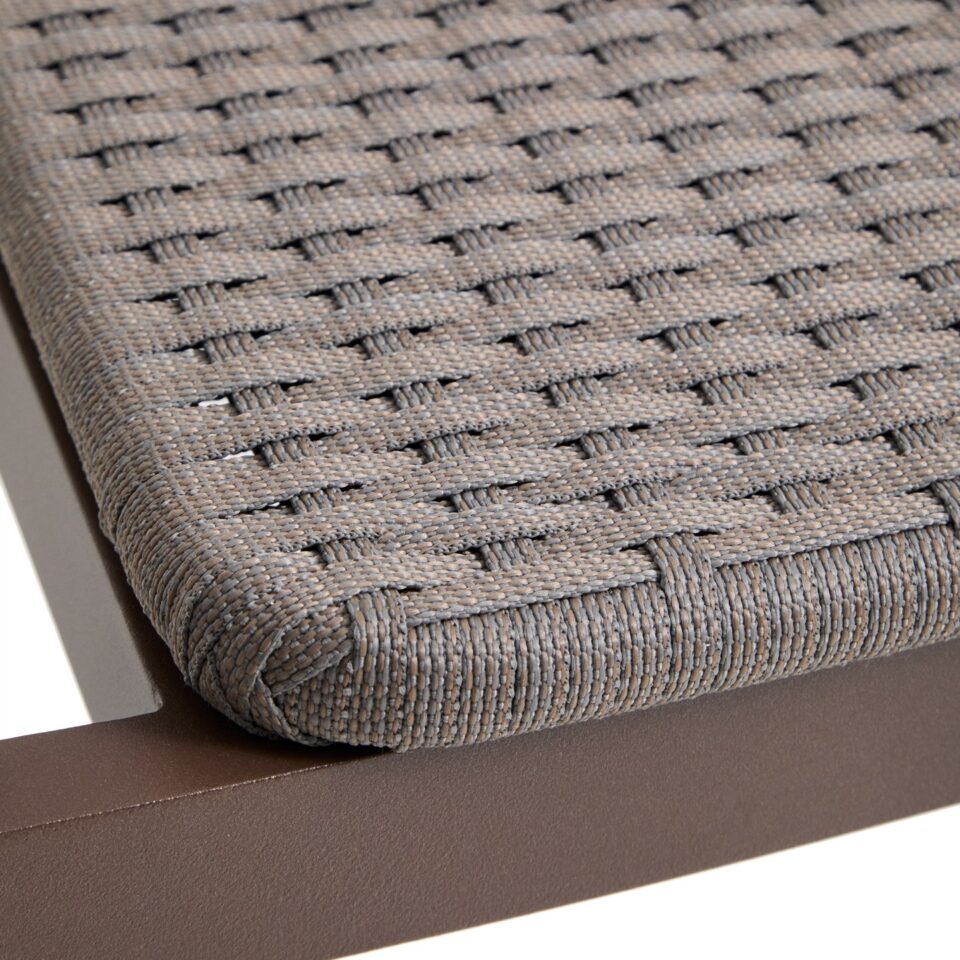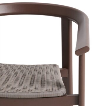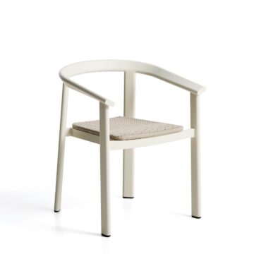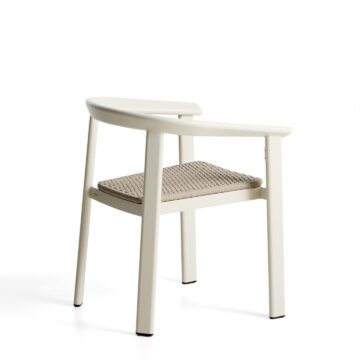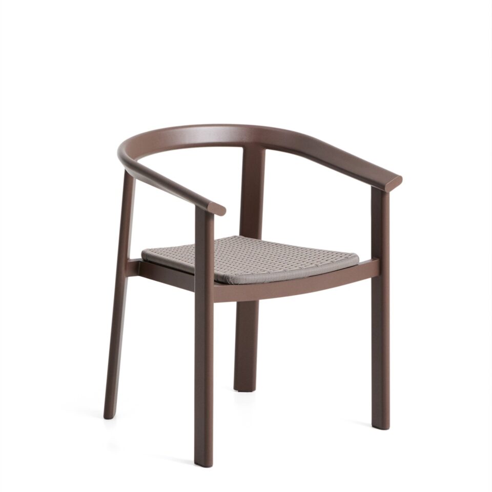 Zložljiv zunanji stol Erice z nasloni za roke združuje lahkotnost, odpornost in sodoben videz. Aluminijasta konstrukcija ter ročno pleten sedež iz vrvi ustvarjata uravnoteženo kombinacijo trajnosti in estetike, primerno za uporabo na prostem ali v notranjih prostorih.